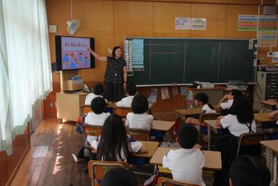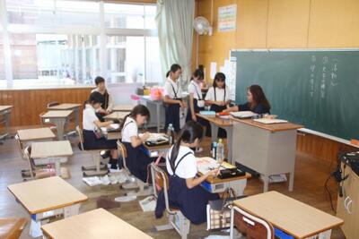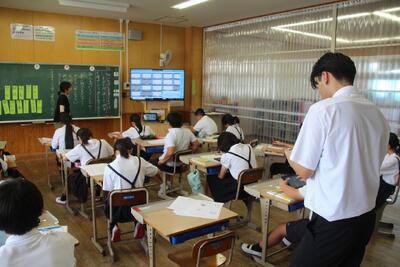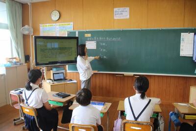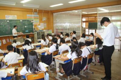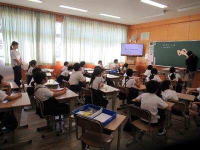 9月1日から5日間、大学2年のHさんが職場体験実習のために本校に来ています。全クラスを回り、授業や児童の様子、学級担任の仕事等を見学しています。休み時間は児童と一緒にサッカーなどをして遊びにも参加しています。将来は学校の先生になるということなので、この実習を大いに楽しんで今後の学びにつなげてほしいです。