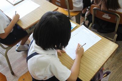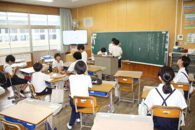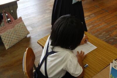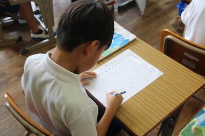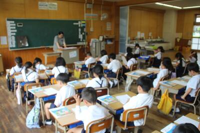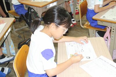 8月11日の大雨の被害があった本校では、全児童を対象に心のアンケート調査を行いました。この日は、1年生がそのアンケートに答えていました。このアンケート結果をもとに、児童の心身の健康状態を把握し、必要な場合はスクールカウンセラーなど関係機関と連携した取組を進めていきます。