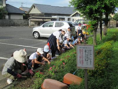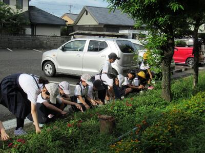 2学期がスタートして3日目のこの日、環境委員会の呼びかけで集まった児童が学校園の草取り作業を行いました。夏休み中に2回草取りを行った場所ですが、たくさんの雑草がのびていました。参加者は汗をいっぱいかきながら、丁寧に作業を行ってくれました。参加してくれた児童の皆さん、ありがとうございました。
