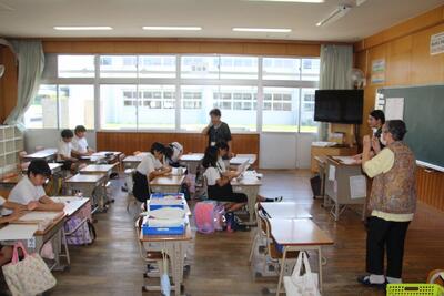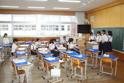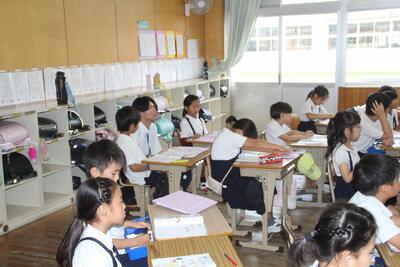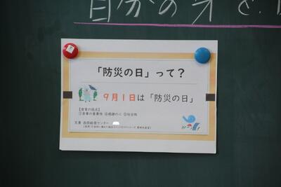 9月1日は防災の日。8月11日の大雨で被害があり、災害を身近なことと捉えている児童がいます。各教室では、関東大震災や令和2年7月豪雨などの資料を見て、災害の恐ろしさや備えについて学び直しました。学校では、いつ起こるか分からない災害に備えて、放送や人の話を静かに聞く、上靴を履く、室内では歩く、掃除や当番活動を責任をもって行うなど、平常時の大切さについて指導をしています。