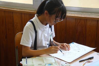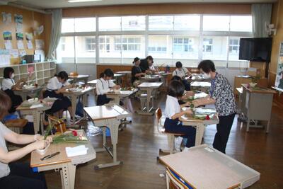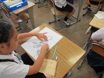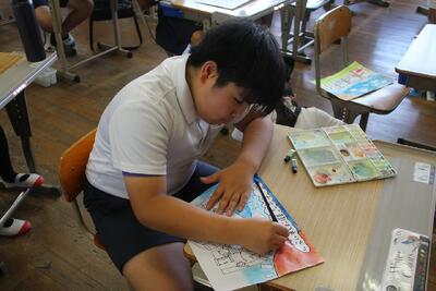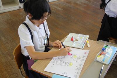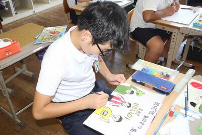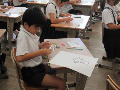 八代校区住民自治協議会青少年部会では、あいさつがあふれる校区づくりの一環として、幼・保・小・中学校の子どもたちに啓発ポスターを募集し、入選作品を選び、10月に行われる「八代校区ふれあいまつり」において全応募作品の展示と表彰式を行う予定になっています。そこで、本校では全児童がこの「あいさつの輪」ポスターの制作に取り組んでいます。この日は6年生がポスターを制作していました。あいさつがあふれる校区になるよう学校と地域が連携して、取り組みを進めていきます。