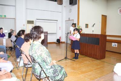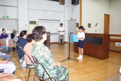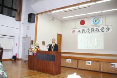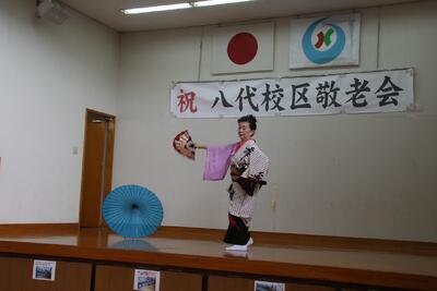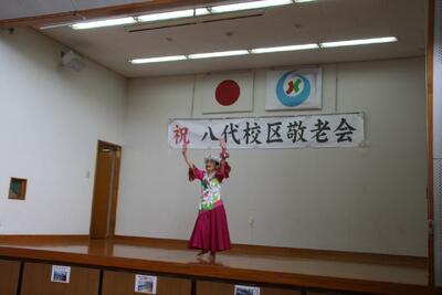 9月15日(日)、八代校区敬老会が6年ぶりに開催されました。 地域のご高齢の皆さまをお祝いするこの会には、多くの方々がご参加くださり、温かく和やかなひとときとなりました。式典では、本校の2年児童二人による作文発表が行われ、日頃の感謝の気持ちやふれあいの様子が、素直な言葉で語られました。 また、アトラクションとして、講演や地域団体による舞踊などが披露され、会場は笑顔と拍手に包まれました。子どもたちにとっても、地域の方々とふれ合い、敬う心を育む貴重な機会となりました。 今後も、学校と地域が手を取り合い、世代を超えたつながりを大切にしてまいります。校区住民自治協議会の皆様、ありがとうございました。