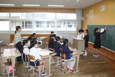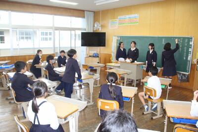 学校教育目標:「自分を大切にし、人とつながり、地域とともによりよく生きる八代っ子」