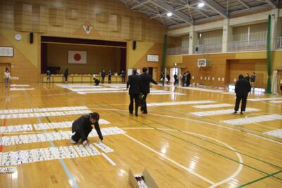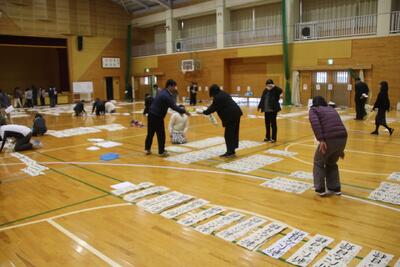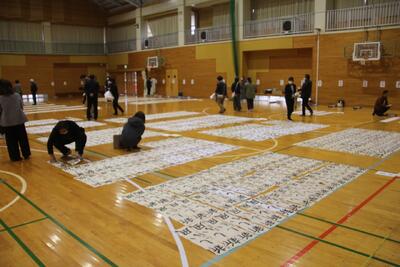 八代地区の小中学校44校が参加する「書写展」の審査が、本校体育館で行われました。 広いフロアいっぱいに各校の力作がずらりと並び、その迫力に思わず息をのむほどでした。審査には各校の先生方が協力して参加し、一点一点、真剣に作品と向き合いながら評価を進めました。 子どもたちの思いが込められた作品が一堂に会し、地域の学びの豊かさを改めて感じる機会となりました。