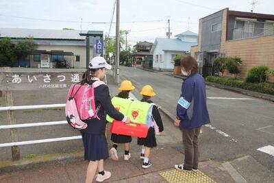 春の全国交通安全運動が終わった翌日からの1週間、主任児童委員および民生委員・児童委員の皆様が、児童の登校を見守ってくださっています。地域の皆様の温かいまなざしとご支援により、子どもたちは安心して学校へ向かうことができています。日頃のご協力に深く感謝いたします。