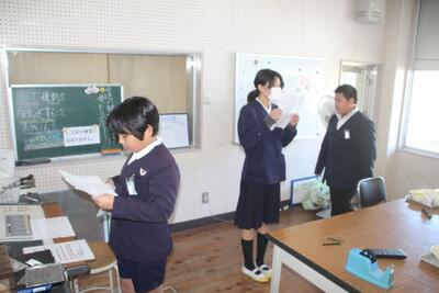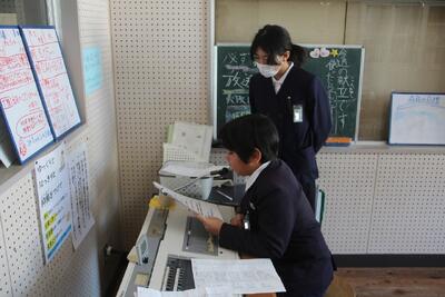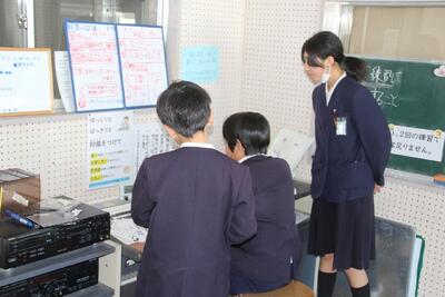 放送原稿を読み返す放送委員会児童 |