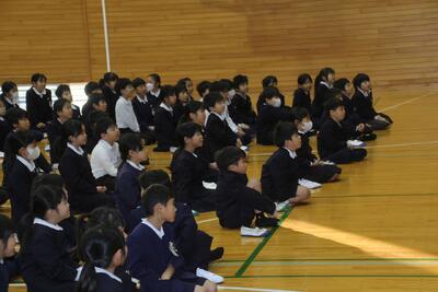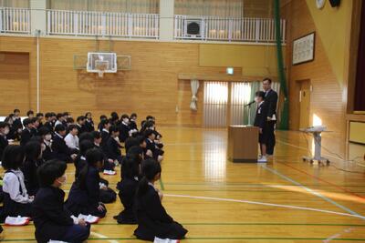 3学期の始業式を行いました。冬休みを終え、児童が元気に登校し、学校に再び活気が戻ってきました。式の前に新しく本校に仲間入りした転入生の紹介を行いました。少し緊張した様子も見られましたが、全校児童から温かい拍手が送られ、笑顔が広がりました。校長先生からは3学期を迎えるにあたり、八代スピリッツ(あいさつ・聞き方・そろえ方)と廊下の右側歩行を意識して取り組むことの話がありました。その後動画を視聴し、2学期の頑張りを3学期につなげる意欲を高めました。児童のやる気に満ちた表情を見ることができ、大変うれしく思います。保護者の皆様には、児童を元気に送り出していただき、ありがとうございました。