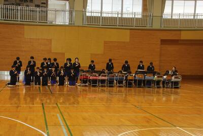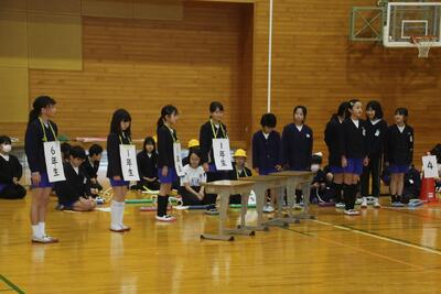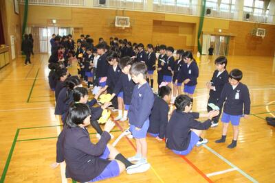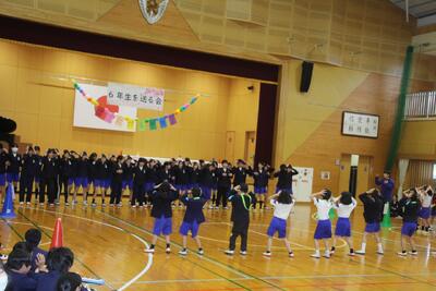 六年生を送る会を開催し、各学年が感謝の気持ちを表すために、呼びかけ・歌・合奏・寸劇など多彩な出し物を行いました。心を込めて作ったメダルや造花のプレゼントも贈られ、六年生の笑顔があふれる温かい会となりました。全校で六年生の門出を祝う、素敵な時間になりました。