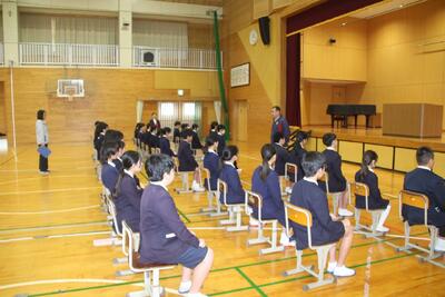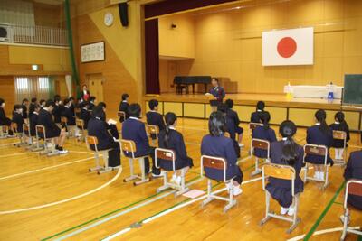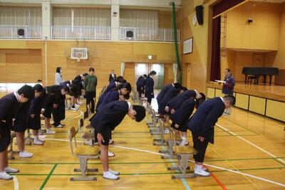 6年生は、体育館で卒業式に向けた初めての全体練習を行いました。自分たちで椅子を並べ、式の場を整えるところから始まり、教務主任の先生からは式への向き合い方や流れについて話がありました。座り方・立ち方・礼の仕方など、一つひとつの動作を確認しながら練習を進める中で、子どもたちの表情には卒業を迎える実感が少しずつ芽生えてきている様子が見られました。