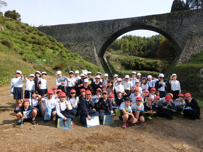 気持ちのよい青空の下、4年生が社会科見学旅行として、石匠館、通潤橋、熊本城へ行き、学びを深めてきました。石匠館では、館長さんの難しい質問にどんどん答える子どもたちの姿があり、これまでの学習を通して身に付けた力を最大限に発揮していました。熊本城では「おもてなし武将隊」の演舞も見ることができ、充実した一日となりました。