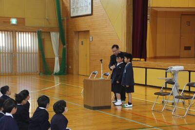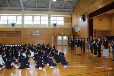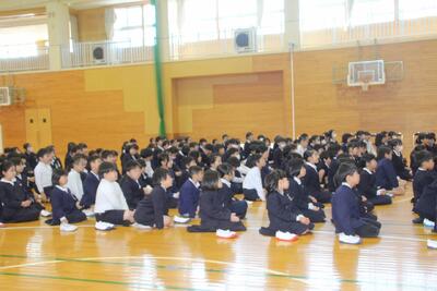 令和8年度の始まりとなる就任式と始業式を行いました。新しい年度の幕開けにふさわしく、体育館には子どもたちの期待に満ちた表情が並びました。就任式では、今年度から本校に着任された7名の先生方が紹介されました。子どもたちは、初めて出会う先生方の自己紹介に熱心に耳を傾け、新しい学びへの期待が一層高まった様子でした。続いて行われた始業式では、校長先生より今年度の学校教育目標についてお話がありました。「自分、人とのつながり、地域とともに」を大切にし、一人ひとりが成長を実感できる一年にしていくこと、そして仲間と協力しながら挑戦する姿勢を育んでいくことが語られました。子どもたちは真剣な表情で耳を傾け、気持ちを新たにしている様子でした。式の後には、子どもたちが最も楽しみにしていた担任発表が行われました。名前が呼ばれるたびに、歓声や拍手が起こり、新しいクラスへの期待が高まっていました。また、今年度から本校に仲間入りした転入生の紹介も行われました。子どもたちは温かい拍手で迎え入れ、新しい友達とともに学校生活をスタートさせました。