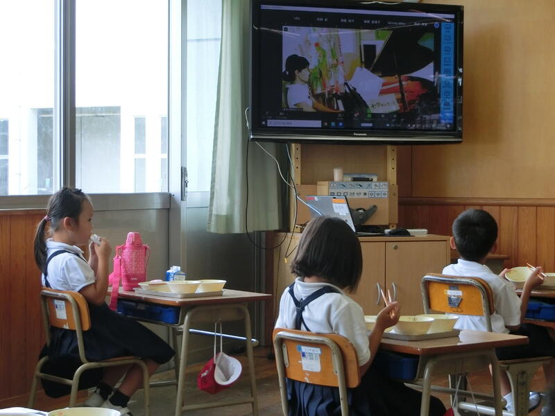 本校ではウェブ会議システムを活用したオンライン配信が充実しています。今回は、給食時間を使って本校職員がピアノ演奏をオンラインで配信しました。名付けて「Zoomで音楽会」です。素晴らしいピアノ演奏に子供たちも聴き入っていました。