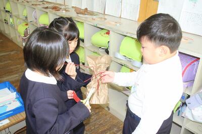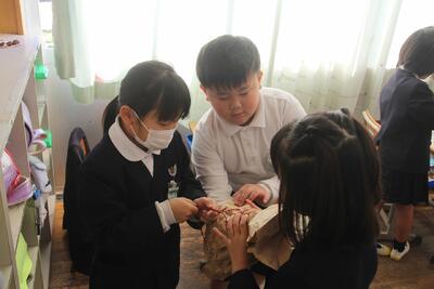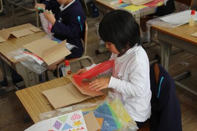 図工の「ぱくぱくぱっくん」の作品を作り始めました。何ができるか、楽しみです。