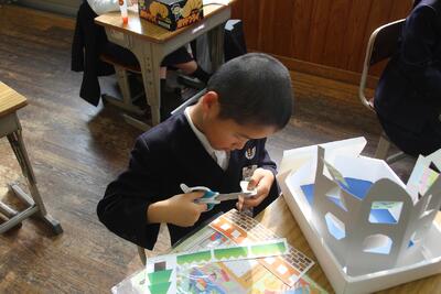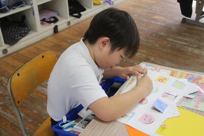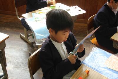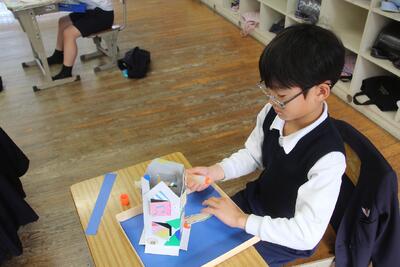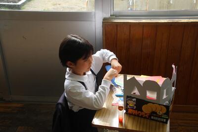 工作は、そろそろできあがりそうです。考えながら、 工夫して作る姿が見られるようになりました。