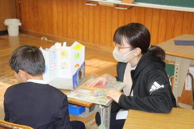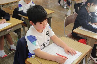 算数のプリントは、自分でまるつけをしました。 しっかり聞きながら、自分の番を間違えず、その表 情は真剣そのものです。
