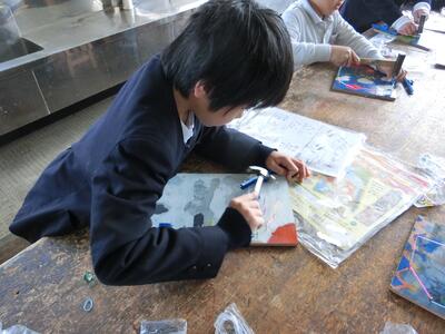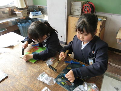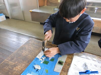 図工では、工作展に向けた作品作りをしています。2学期の終わりから制作に取りかかりましたが、やっと板に絵をかいてニス塗りまで終わりました。そして、この日から、みんながずっと楽しみにしていたくぎ打ちが始まり、終始子どもたちは笑顔で作品作りに取り組んでいました。子どもたちの発想はとてもおもしろく魅力的で、みんな素敵な作品が仕上がりそうです。来週で完成予定です。完成が楽しみです!