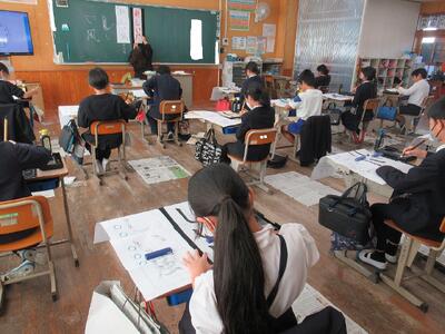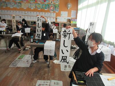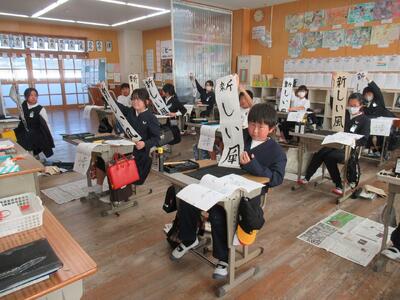 12月16日(火)に、地域の方に来校していただき、書き初めの指導をしていただきました。