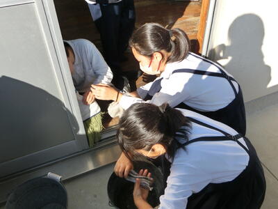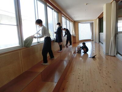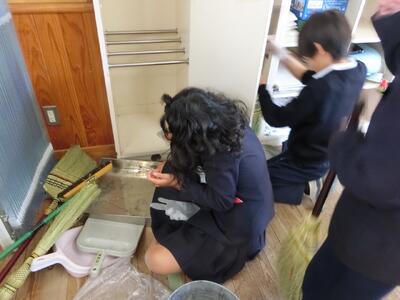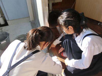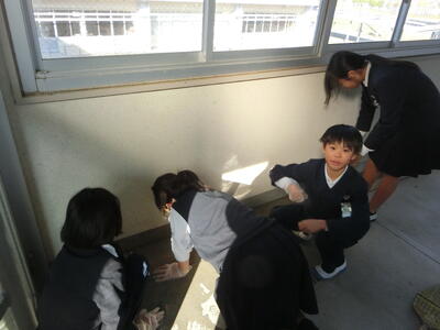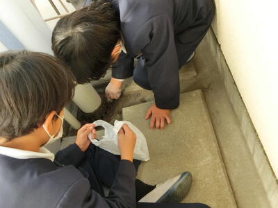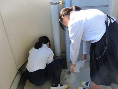 家庭科の学習で、住まいを気持ちよく整える学習をしました。掃除の仕方を学習した後、学校の汚れている場所を見つけて写真を撮り、どうやって汚れを落とすかを考えました。そして、実践!どの班も夢中になって、汚れを落としていました。みんなで、ビフォー、アフターの写真を見比べてみると、「おお~!」と歓声!どの班もきれいに掃除を完了し、気持ちもすっきりしたようです。