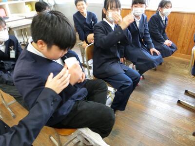 | 2月16日、17日の2日間で喫煙防止教室、薬物乱用防止教室を行いました。ゲストティーチャーとして専門のクリニックの先生、薬剤師の先生におこしいただき、煙草や薬物の害や依存性を教えていただきました。煙草の煙を水に溶かしたものの匂いをかいでみたり、薬物を勧められたときの断り方を練習したりと体験をしながら学ぶことができました。 |