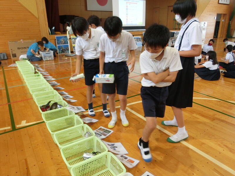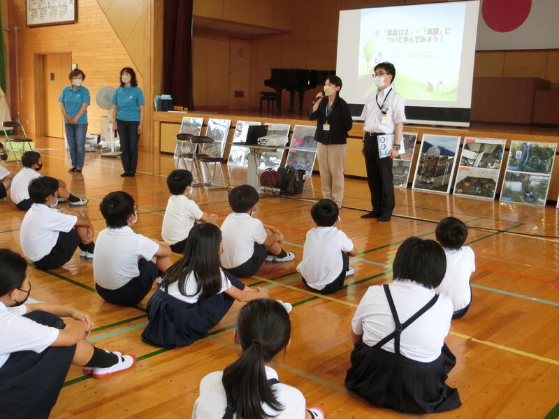 テーマは「食品ロス」と「資源」でした。子供たちは体験活動などを通して、楽しく環境の大切さについて学んだようです。今回の学びをぜひ日常生活に生かしていってほしいと思います。