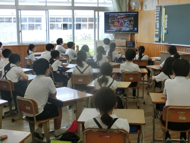 今年度もPTAの方々による朝の読み聞かせが始まりました。今回はオンラインを活用し、各教室への配信を行いました。どの学級の子供たちも楽しそうに読み聞かせをきいていました。いつも興味深く楽しい本を選んでいただきありがとうございます。