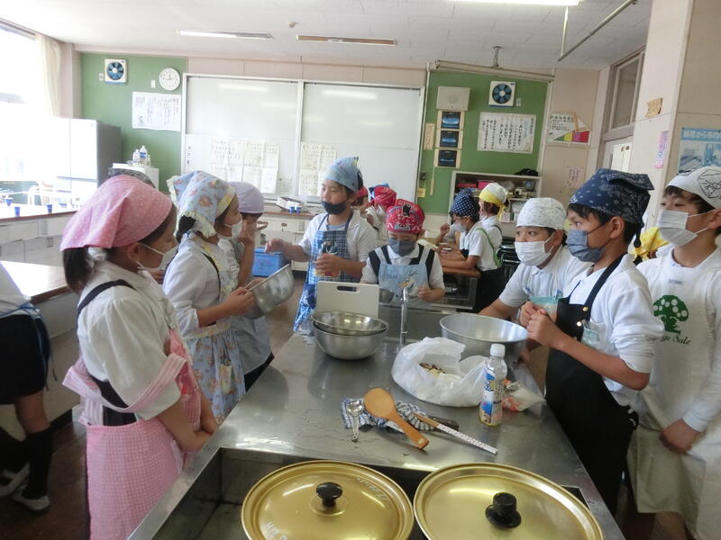 みんなでお芋を丁寧に洗ったり、担任の調理をサポートしたり、後片付けをしたりしました。お芋に火が通り、飴の色が変わるのを見た子供たちは大興奮!「いいにおい!」「早く食べたい!」との声が上がりました。