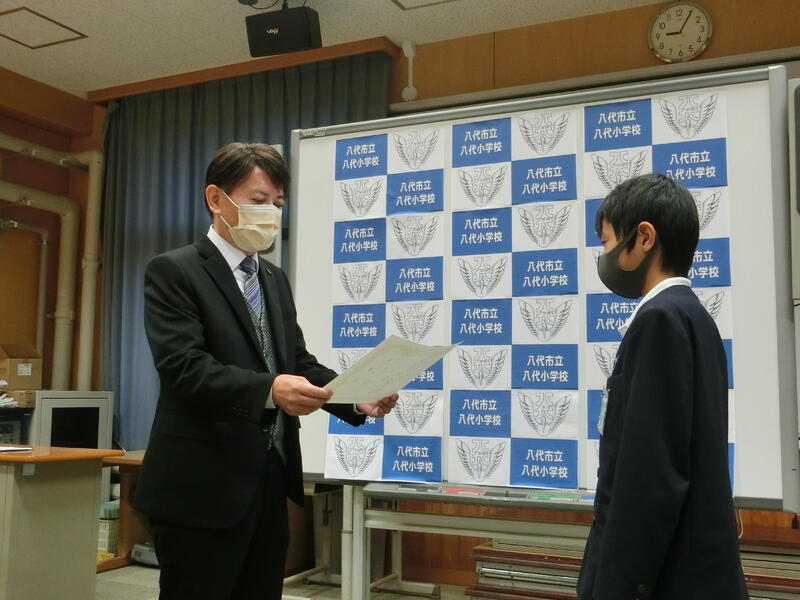 八代小教育目標:「自分も人も大切にする、自ら学ぶ子供」