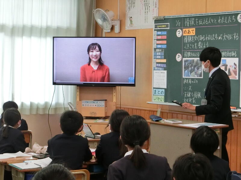NHK熊本放送局の「クマロク」のアナウンサー時川さんから、5年2組の子供たちに向けてメッセージをいただき、子供たちの深い学びにつなげることができました。