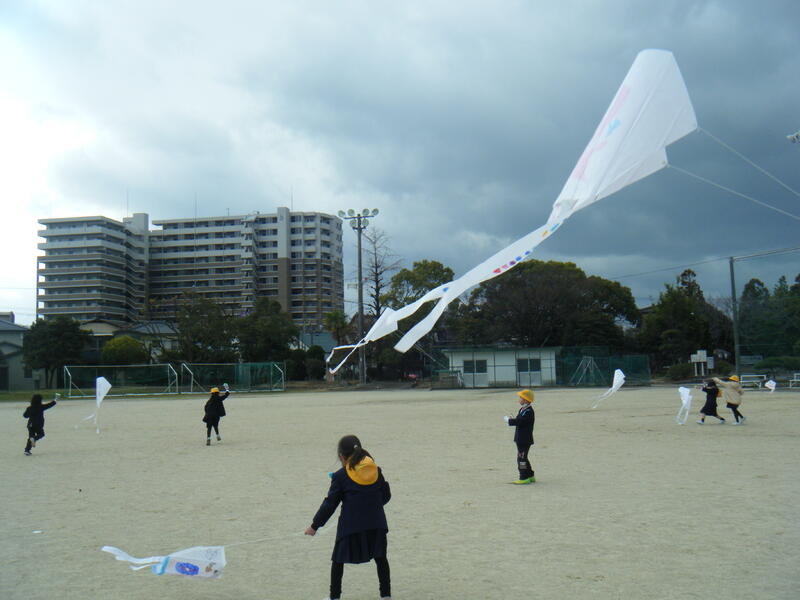 みんなとても喜んで、寒さに負けず楽しく凧揚げをしていました。