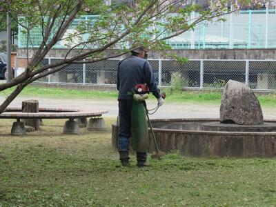 それを一手に担っているのが、学校施設用務員の先生です。毎日早朝から草刈りや整地、補修などに励まれ、子供たちの安全を守られています。