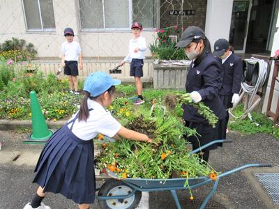 令和6年4月24日(水)の始業前の時間に、先日お知らせしました環境委員会の呼びかけで集まった子供たちの「学校ボランティア活動」(第2回)が行われていました。