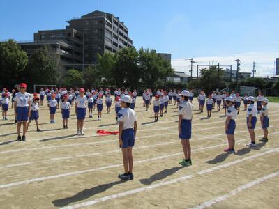 授業を中心にした普段の学校生活では、子供たちの自我や個性の伸長を図っています。そして、この運動会では、(集団行動を通して)「協調性」(協力しながら共通の目標に向かって行動できる能力)や、「仲間意識」(共通の目的や関心、利害などを共有する集団において、仲間同士で抱く連帯感)、「規範意識」(ルールや約束などの規範に基づいて、主体的に判断して行動しようとする意識)を育てたいと思っています。