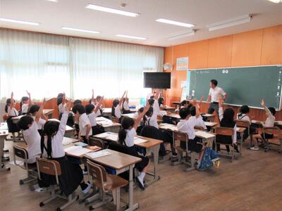 八代小教育目標:「自分も人も大切にする、自ら学ぶ子供」
