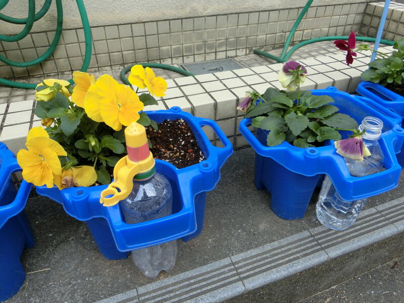 「大きく育ってね」という思いをこめてパンジーの苗とチューリップの球根を植えました。