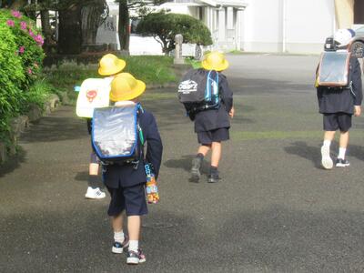 下校の際は、校長先生や教頭先生、担任の先生などによる「お帰り指導」がありました。子供たちは、帰宅する方向別に整列し、担当の先生と共に歩いて、危険箇所などを確認しながら下校しました。