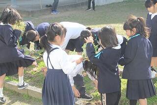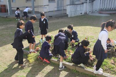 きれいになった花壇に、今度はお花を植えます。新しい1年生が喜んでくれるといいな。