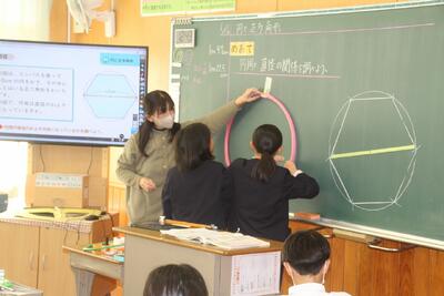 17日(水)、地域の方にご指導いただいて、書き初めの練習をしました。S先生の言われる通りに書いていくと、あっという間にみんな納得いく字が書けたようです。3学期には、書写展に向けて清書をしていく予定です。