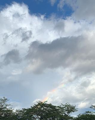 朝、虹が出ていました。運動場でサッカーをしていた男の子が教えてくれて、一緒に空を見上げました。今日もいいことがありますように・・・。