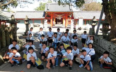 2年生は町探検をしています。10/21(水)は、宮地駐在所⇒宮地郵便局⇒宮地コミュニティ・センター⇒八代神社を探検しました。10/29(木)は、八代神社の小林宮司様に、たくさん質問をし、多くのことを教えていただきました。ガメの中にも入らせていただき、子どもたちは大喜びでした。