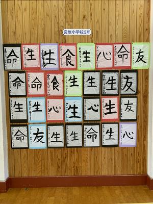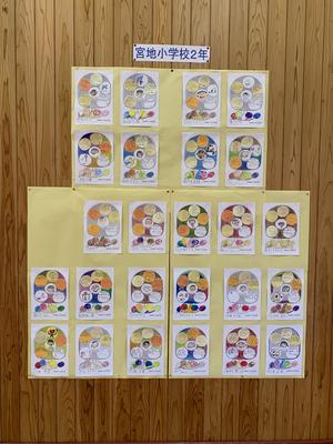 この写真は何かわかりますか?額に入った一枚の絵画のようです。宮地小学校の玄関から2階へ上がる階段の踊り場に小窓があります。青空色と銀杏の葉の黄緑色のコントラストが本当にきれいで思わず写真を撮りました。やがて中庭は落ち葉で金色に輝き、そこで子どもたちが笑顔で遊ぶことでしょう。毎日、この窓を見上げて銀杏の葉の色づきを楽しんでいます。