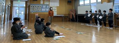 3/1(月)のわくわくタイムで、3/3(水)に行われる「お別れウォークラリー」の計画を立てました。縦割り班で活動します。5年生がリーダーです。