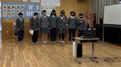 3/9(火)、最後の児童集会です。6年生の各委員長が、この1年間を振り返って、発表しました。すべての子どもたちが、それぞれの教室で真剣に聴いていました。