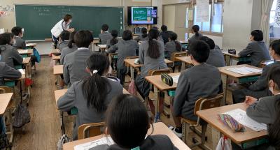 贈呈の後、それぞれの学校紹介を行い、お互いに質問し合いました。