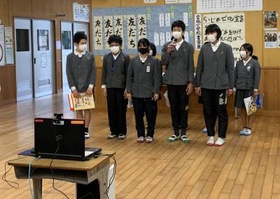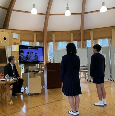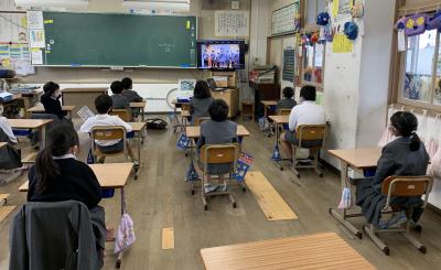 3月2日(火)午後1時から、八竜小学校と宮地小学校で、義援金贈呈式を行いました。オンラインで実施しました。