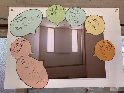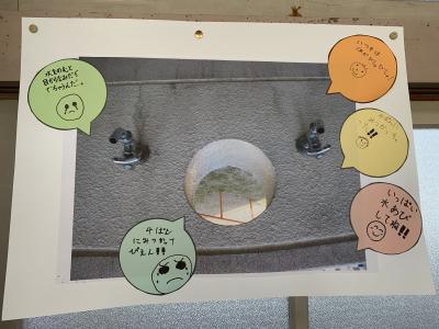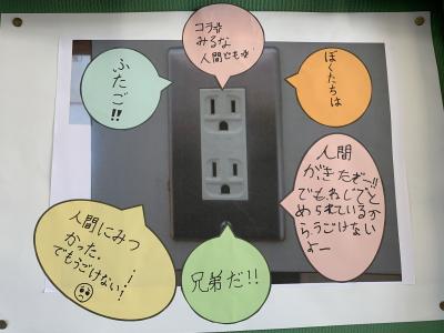 子どもたちは、カメラを手に学校じゅうをまわって、顔に見えるものを探して写真を撮り、コメントを書き、みんなで共有しました。