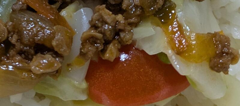 今日は、おいしい麦ご飯にメキシコ料理のタコスをのせたタコライスでした。