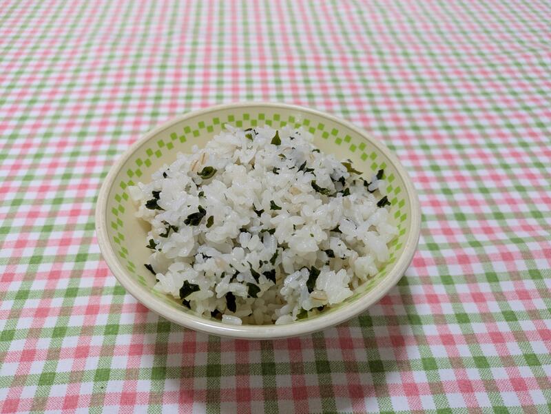 その上に、いつもおいしい麦ご飯をわかめご飯してありました。わかめご飯の単品だけでもおいしかったのに、今日もおいしいおかずで、“あっ”というまに大盛のわかめご飯がなくなりました。