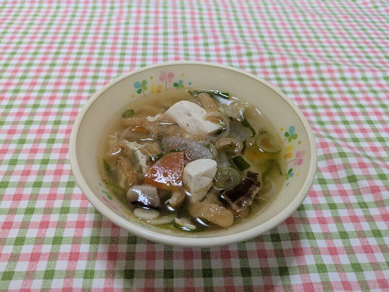 今日のふしそう麺汁は、鰹と昆布の出汁に鶏肉の旨味が溶けん混んで、薄口醤油で味付けしてある逸品のおいしさでした。