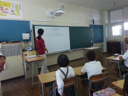 週に2回、外国語専科の先生に中学年の外国語活動と高学年の外国語を教えていただいています。外国語を楽しみ、好きになってほしいと思っています。