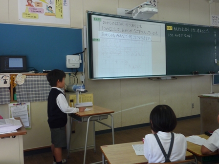 5校時に2年1組(担任原野)で算数の研究授業がありました。かけ算の学習をしました。放課後、どのような指導方法がよかったのか職員全員で検討しました。よりよい授業をするために日々研修に努めています。